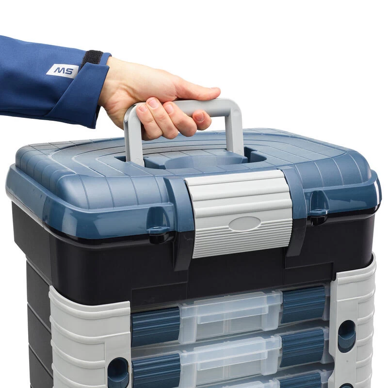 Cette boite est conçue pour ranger et transporter ses accessoires au bord de l’eauCette boite de rangement possède 4 tiroirs pour une grande capacité de stockage. La poignée facilite le transport sur la zone de pêche.