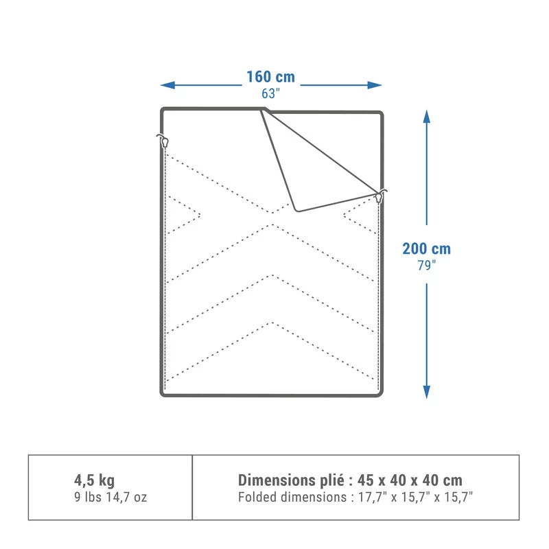 Nos concepteurs campeurs ont conçu ce sac de couchage Arpenaz 10°coton Double pour dormir confortablement à 2 en camping à des températures proches de 10°C.10°C. Notre motivation ? Vous proposer un sac de couchage double confortable avec un toucher coton biologique très agréable. Long de 2 mètres, il est convertible en couette. Garantie 5 ans !