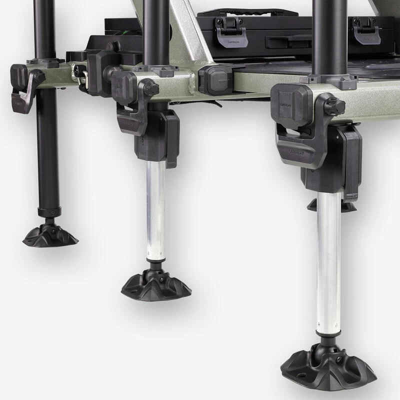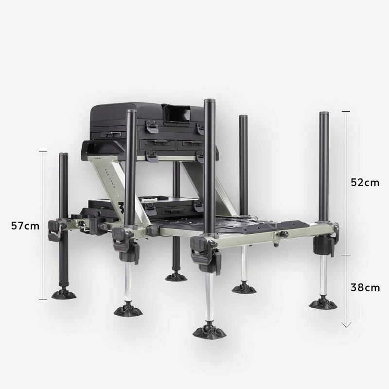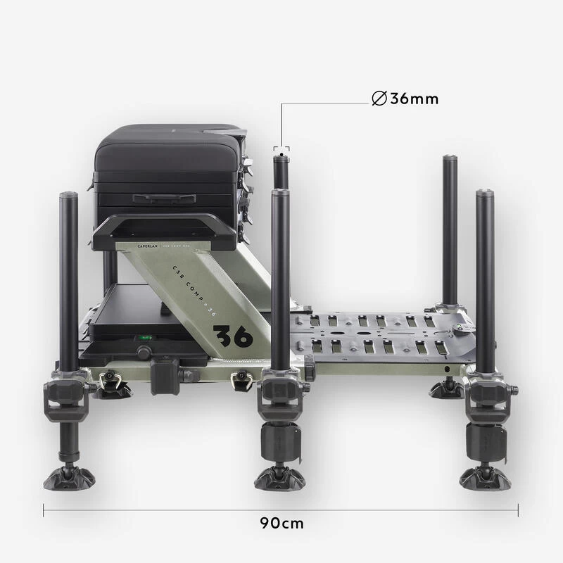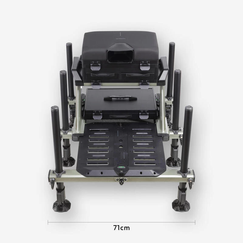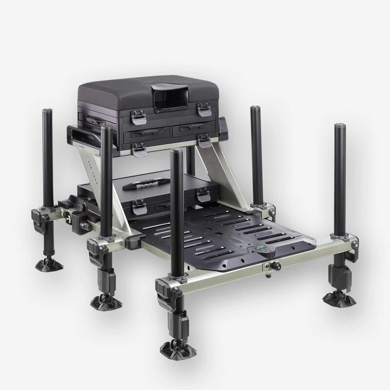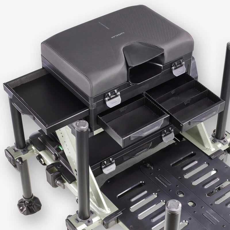 Station de pêche spécialement développée par notre équipe de concepteurs pour le pêcheur au coup qui souhaite être confortablement installé au bord de l’eau.L’utilisation du « Concentric System CS » sur ses pieds lui donne un avantage pour un réglage facile et rapide sur la berge !